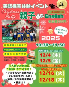 ここには、readingやwritingだけではない、本当に使える英語を幼少期から自然と楽しく身につけられる環境があると思います。幼い子供たちにとって、楽しい!まずはそれが1番ではないでしょうか。「楽しい」が継続となり、いつか花開く。そんな日が来るようこれからもお力をお借りしながら子供の楽しい!をサポートしていきたいと思います。