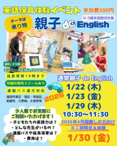 ここには、readingやwritingだけではない、本当に使える英語を幼少期から自然と楽しく身につけられる環境があると思います。幼い子供たちにとって、楽しい!まずはそれが1番ではないでしょうか。「楽しい」が継続となり、いつか花開く。そんな日が来るようこれからもお力をお借りしながら子供の楽しい!をサポートしていきたいと思います。
