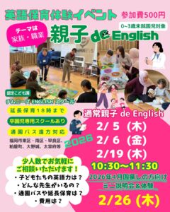 ここには、readingやwritingだけではない、本当に使える英語を幼少期から自然と楽しく身につけられる環境があると思います。幼い子供たちにとって、楽しい!まずはそれが1番ではないでしょうか。「楽しい」が継続となり、いつか花開く。そんな日が来るようこれからもお力をお借りしながら子供の楽しい!をサポートしていきたいと思います。